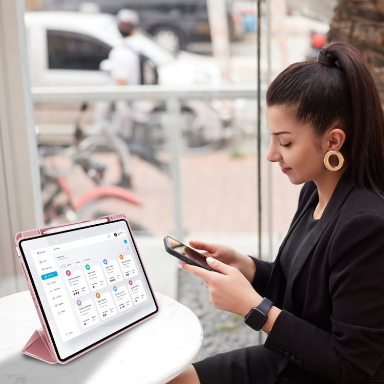 For iPad Pro 12.9 3-fold TPU Smart Leather Tablet Case with Pen Slot(Pink)