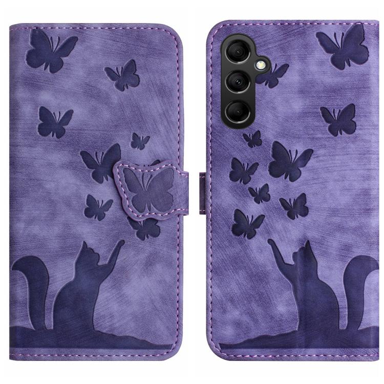 For Samsung Galaxy A26 5G Butterfly Cat Embossing Flip Leather Phone Case(Purple)