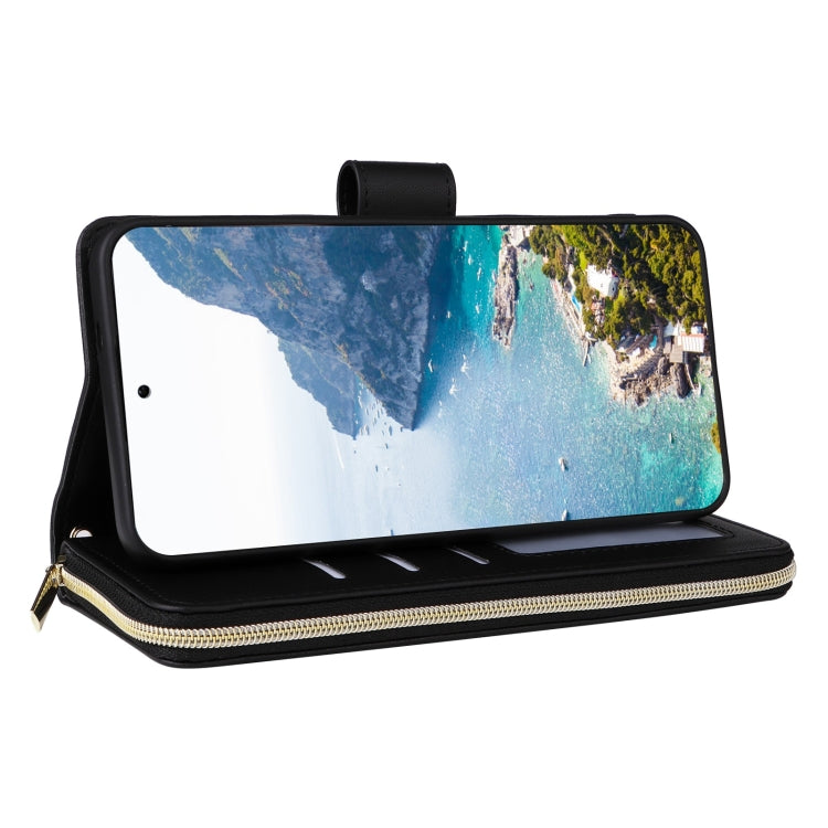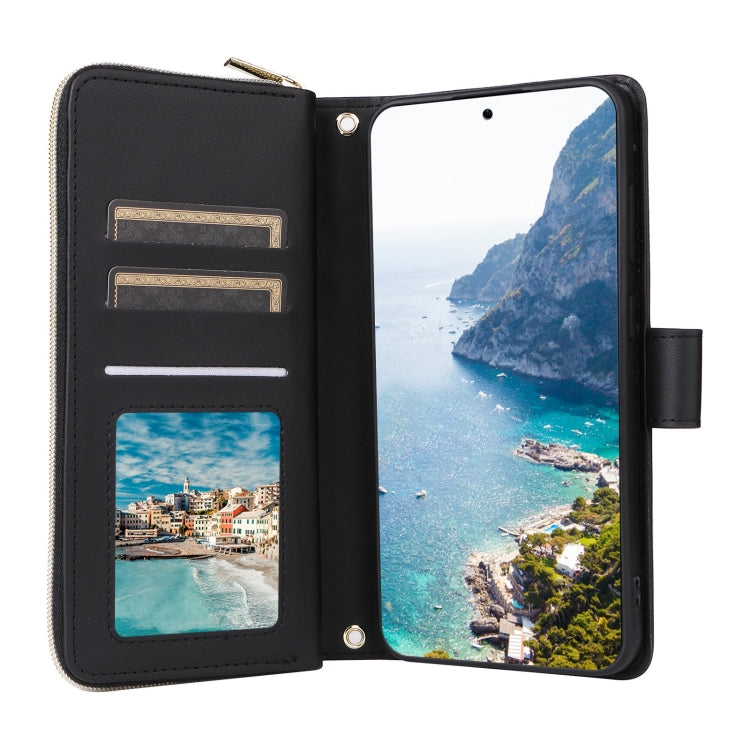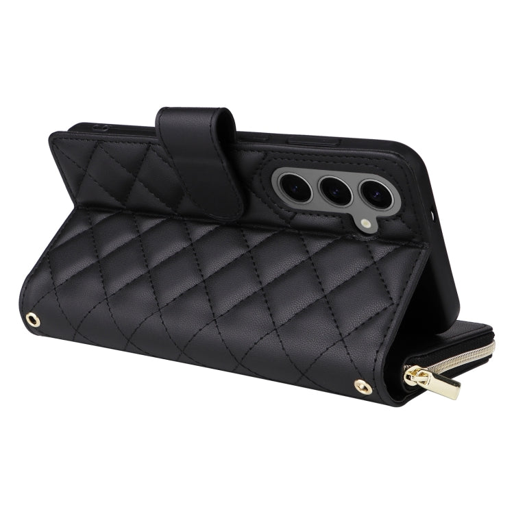 For Samsung Galaxy S25+ 5G Crossbody Rhombic Zipper Tower Buckle Leather Phone Case with Lanyard(Black)