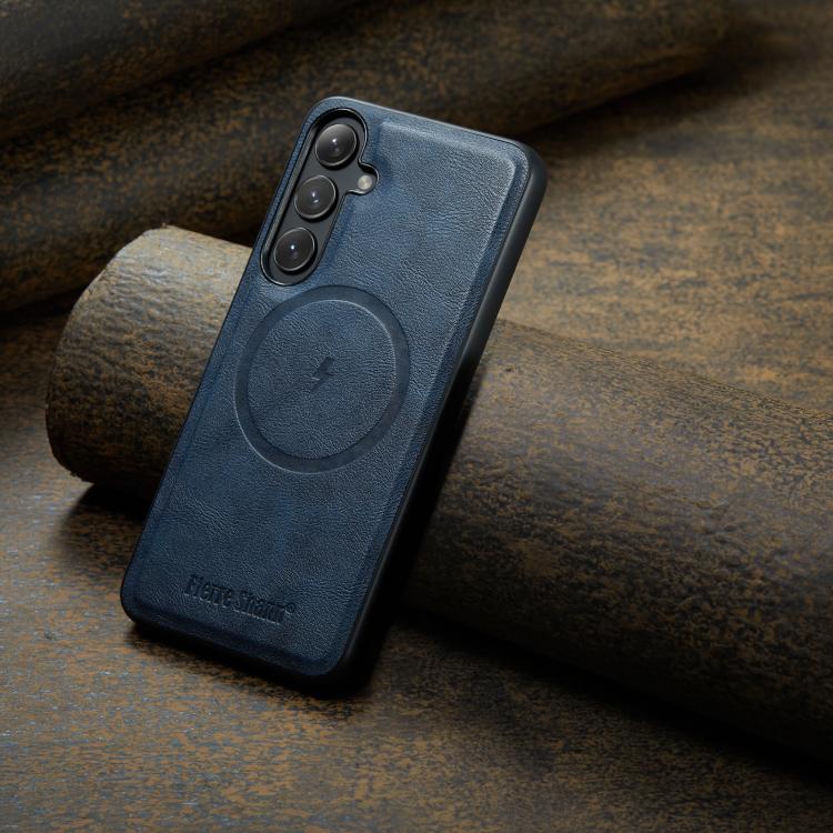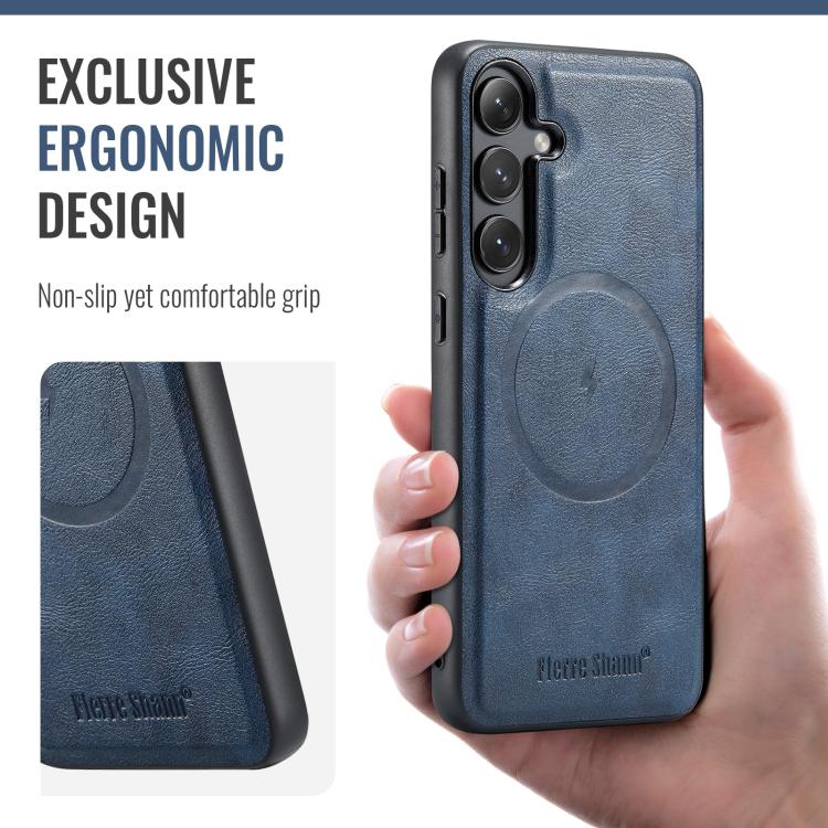 For Samsung Galaxy S25+ 5G Fierre Shann FS-027 Cowhide Texture MagSafe Magnetic Phone Case(Blue)