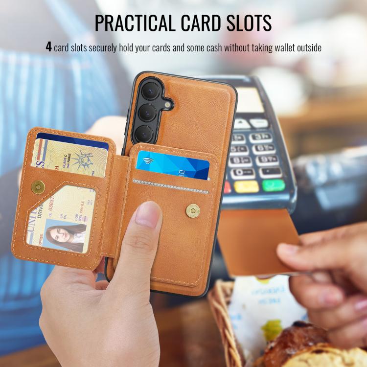 For Samsung Galaxy S25 5G Fierre Shann FS028 MagSafe RFID Card Holder Back Phone Case(Brown)