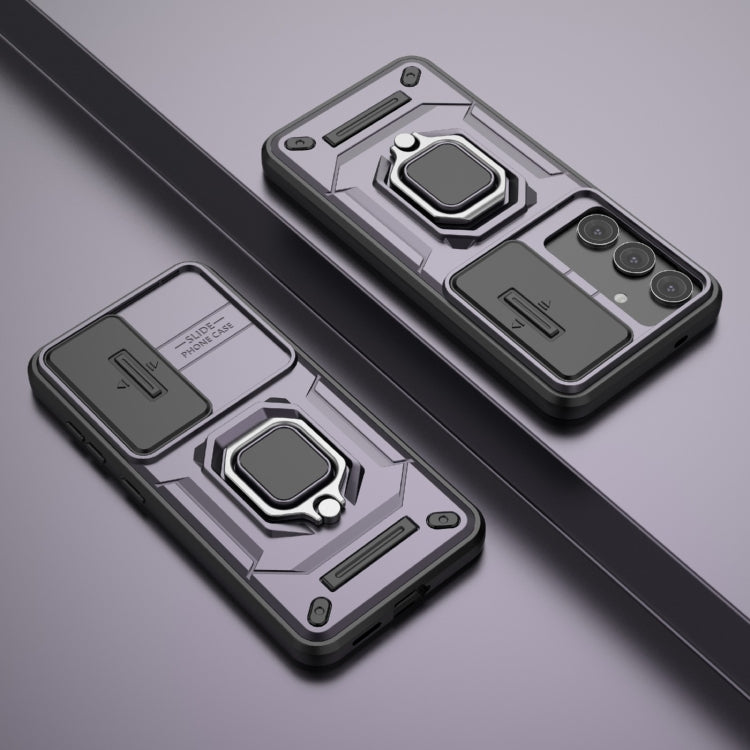 For Samsung Galaxy S25 5G Sliding Camshield TPU + PC Shockproof Phone Case with Holder(Purple)