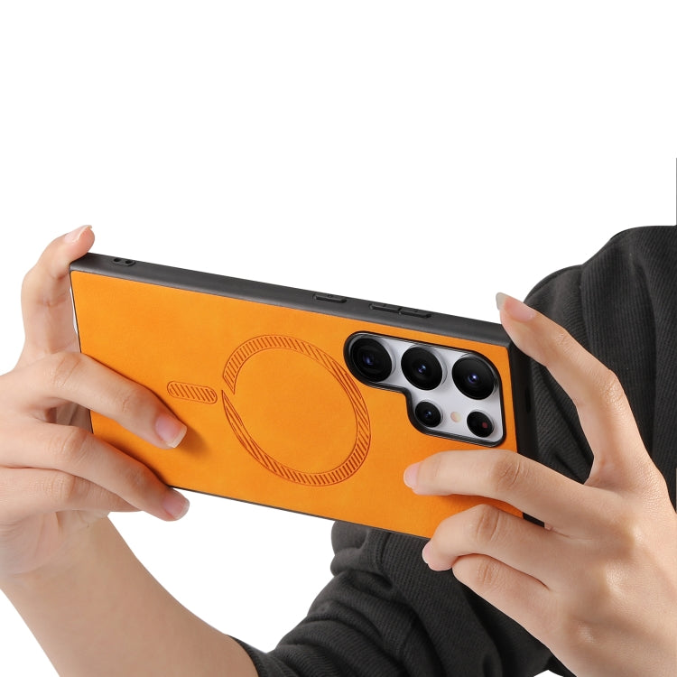 For Samsung Galaxy S25+ 5G Solid Color Retro Magsafe PU Back Cover Phone Case(Yellow)