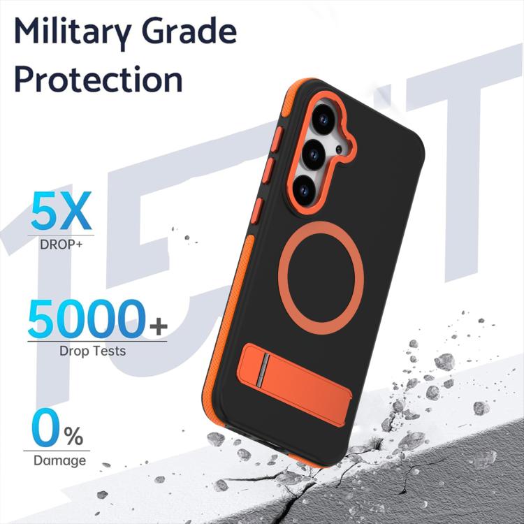 For Samsung Galaxy S25 / S24 5G Dual-Color Skin Feel Magsafe Phone Case with Holder(Purple)