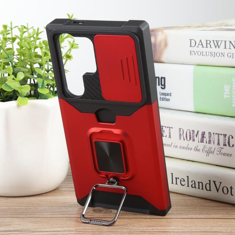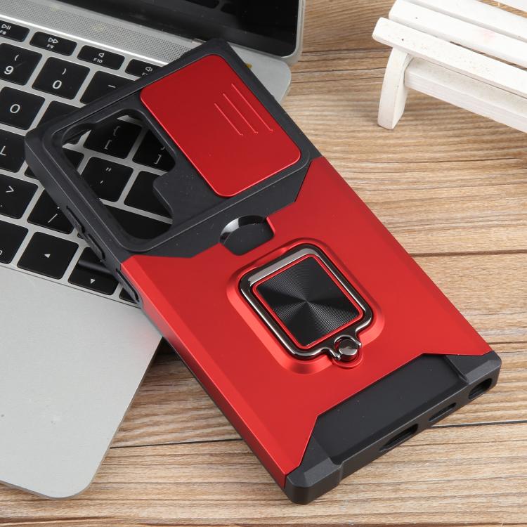 For Samsung Galaxy S25 Ultra 5G Camera Shield Card Slot PC+TPU Phone Case(Red)