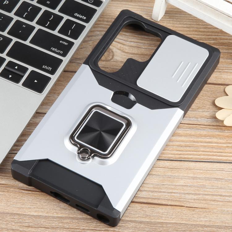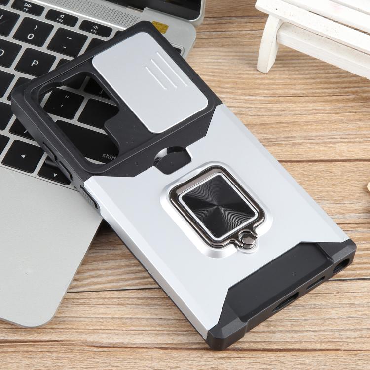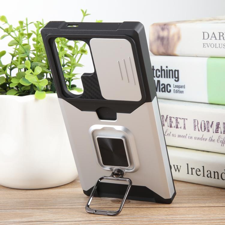 For Samsung Galaxy S25 Ultra 5G Camera Shield Card Slot PC+TPU Phone Case(Silver)