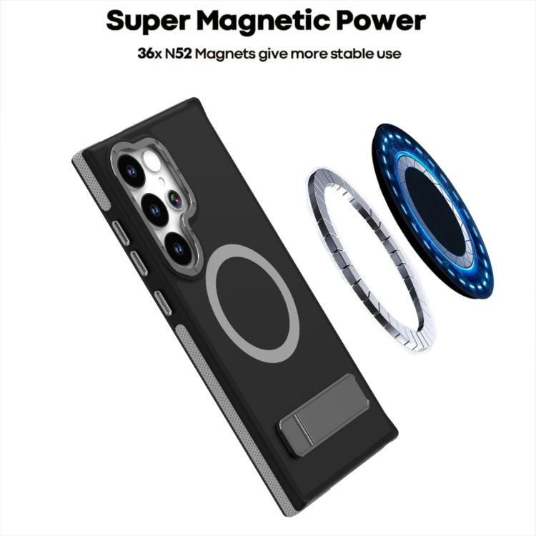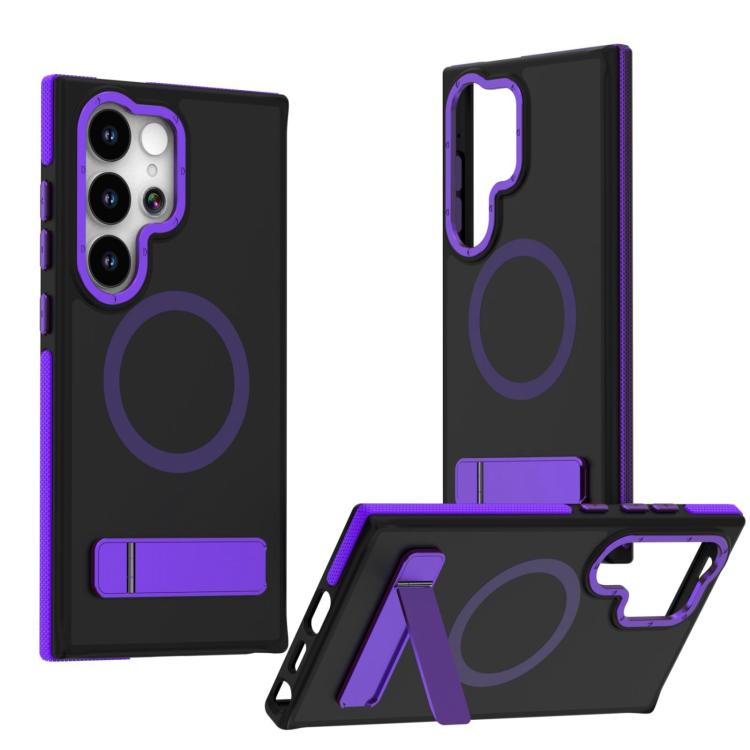For Samsung Galaxy S25 Ultra 5G Dual-Color Skin Feel Magsafe Phone Case with Holder(Purple)