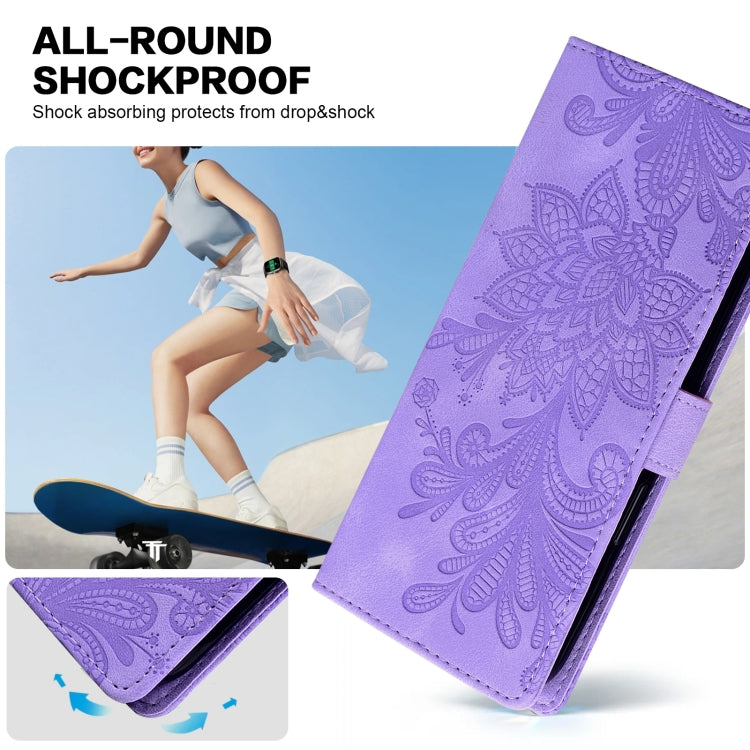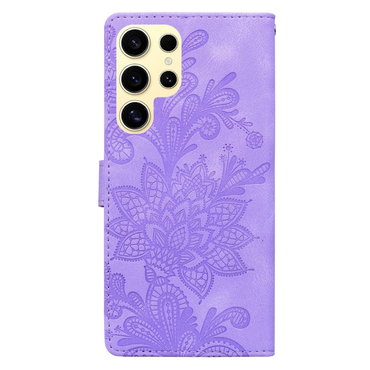 For Samsung Galaxy S25 Ultra 5G Lace Floral Embossed Magnetic Buckle PU Phone Case With Wrist Strap(Purple)
