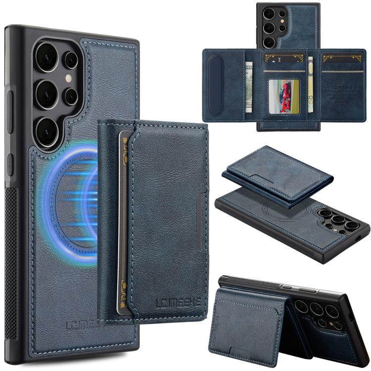For Samsung Galaxy S25 Ultra 5G LC.IMEEKE L5 Series Detachable RFID Card Bag Magsafe Phone Case(Blue)