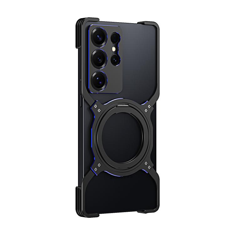 For Samsung Galaxy S25 Ultra 5G Mechanical Arm Borderless MagSafe Holder Metal Phone Case(Black Blue)