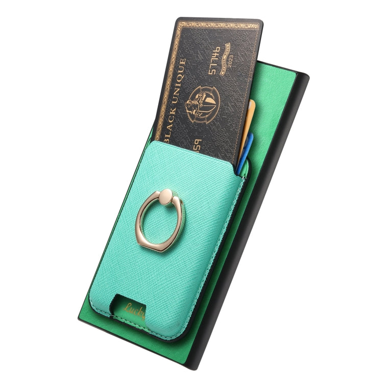 For Samsung Galaxy S25 Ultra 5G Retro Cross Leather Ring Vertical Insert Card Bag MagSafe Phone Case(Green)