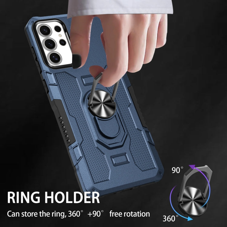 For Samsung Galaxy S25 Ultra 5G Ring Holder Armor Hybrid Phone Case(Blue)