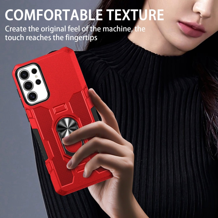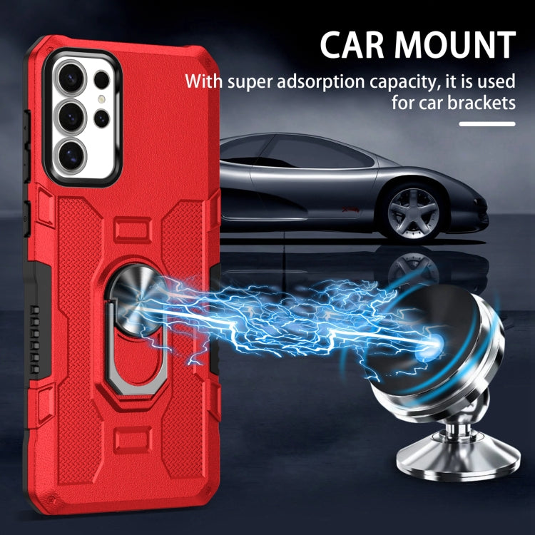 For Samsung Galaxy S25 Ultra 5G Ring Holder Armor Hybrid Phone Case(Red)