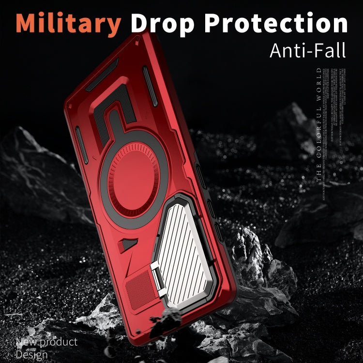 For Samsung Galaxy S25 Ultra 5G Shield Frame Holder MagSafe Phone Case(Red)