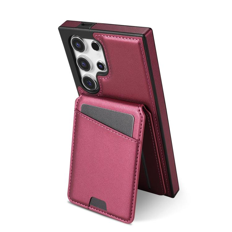 For Samsung Galaxy S25 Ultra 5G Skin Feel Detachable Card Bag Magsafe Phone Case(Wine Red)