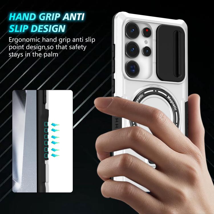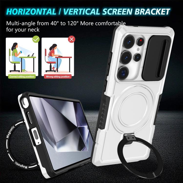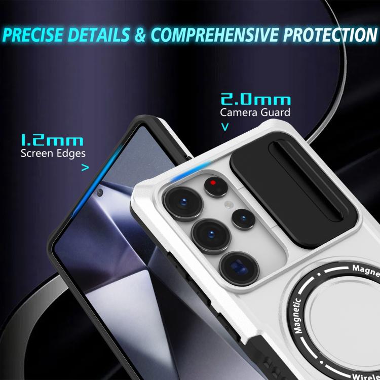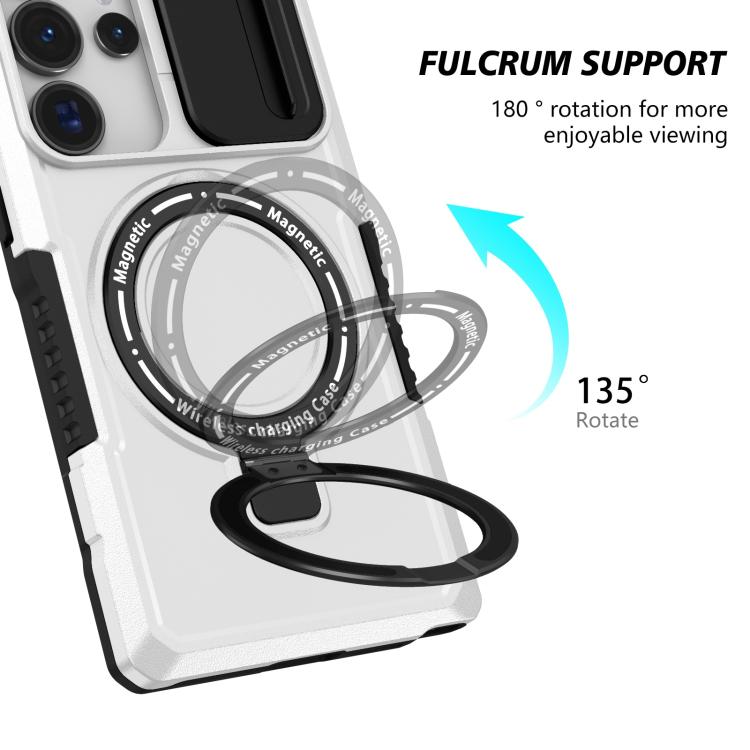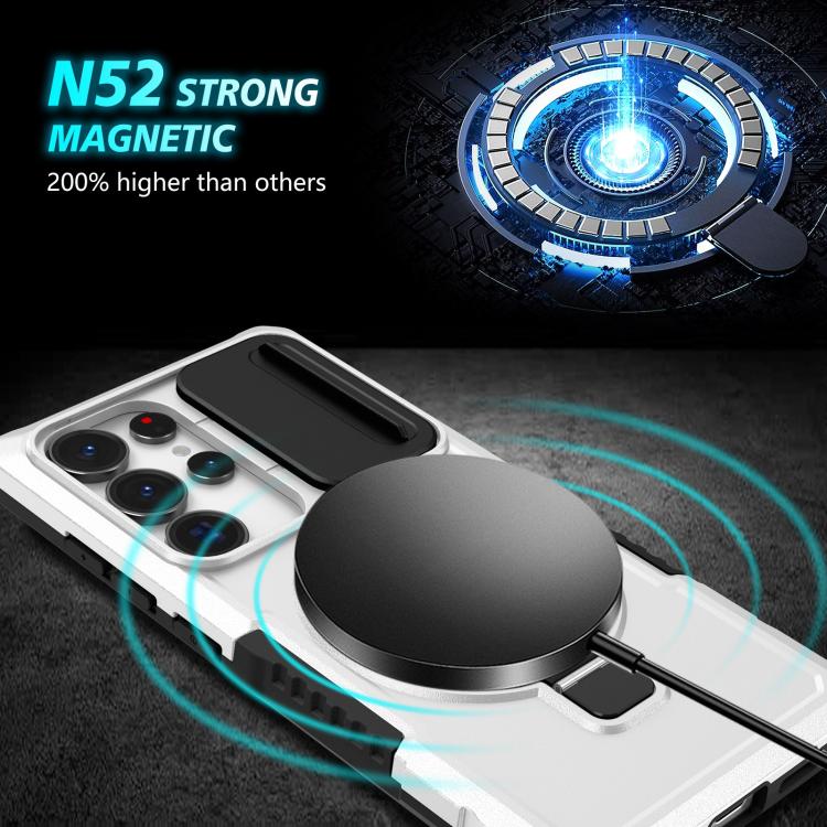 For Samsung Galaxy S25 Ultra 5G Sliding Camshield MagSafe Holder TPU Hybrid PC Phone Case(Black White)
