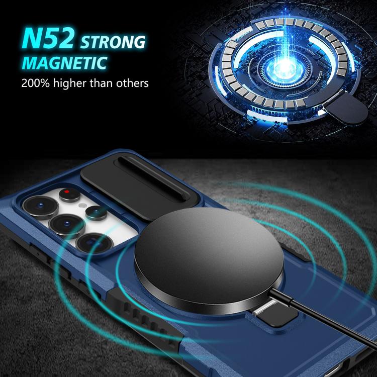 For Samsung Galaxy S25 Ultra 5G Sliding Camshield MagSafe Holder TPU Hybrid PC Phone Case(Royal Blue)