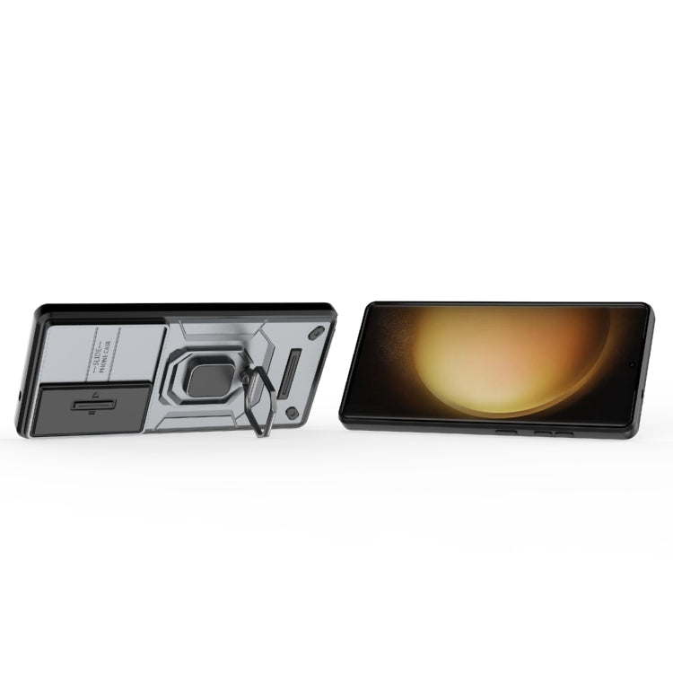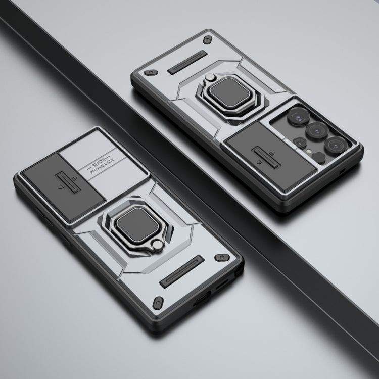 For Samsung Galaxy S25 Ultra 5G Sliding Camshield TPU + PC Shockproof Phone Case with Holder(Grey)
