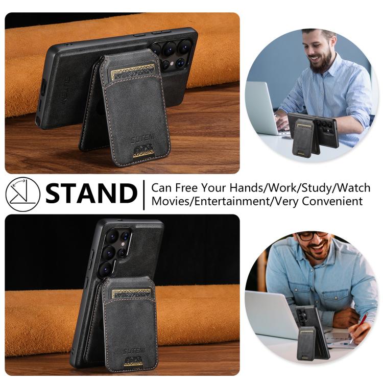 For Samsung Galaxy S25 Ultra 5G Suteni M5 Magnetic Card Bag MagSafe Leather Phone Case(Black)