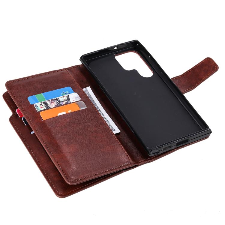 For Samsung Galaxy S25 Ultra 5G Tri-Fold 9-Card Wallets Leather Phone Case(Brown)