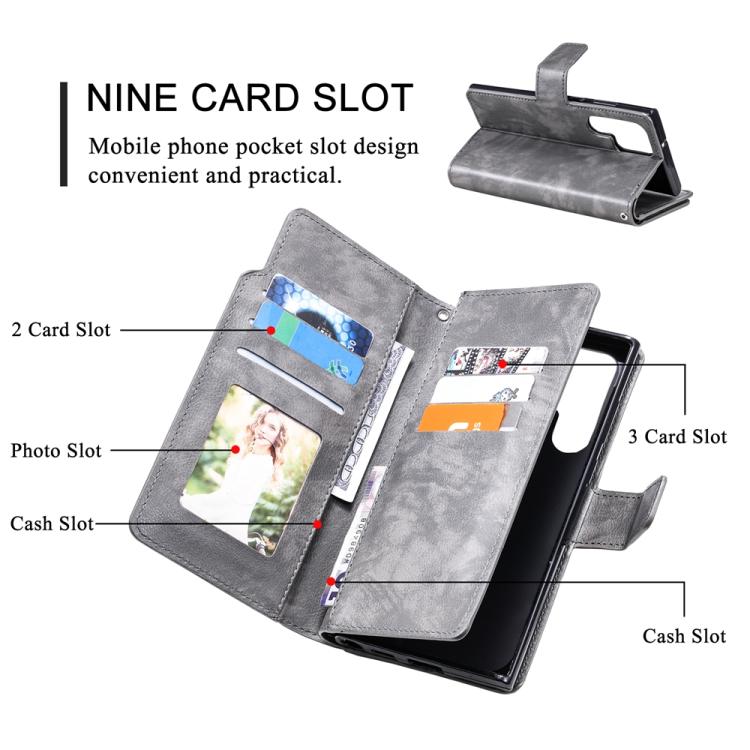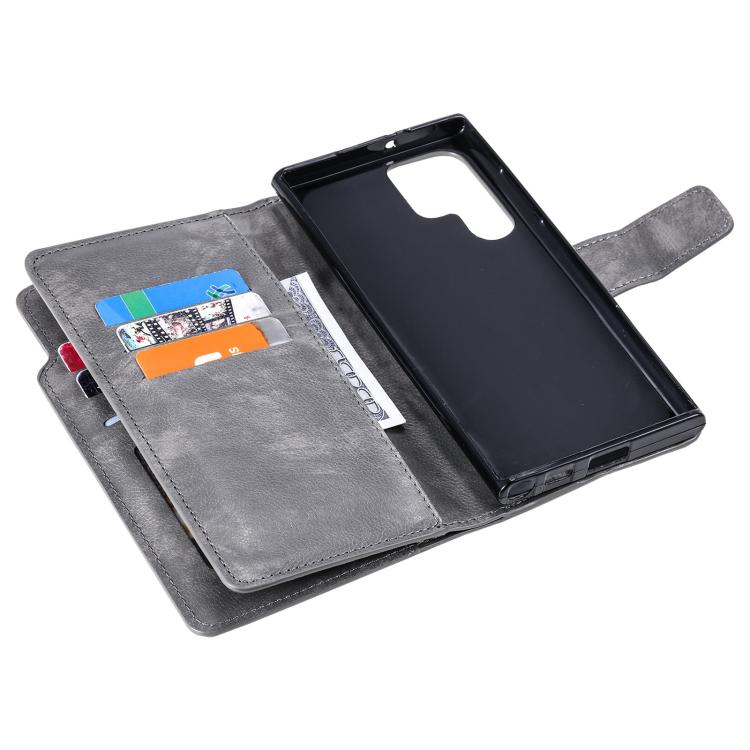 For Samsung Galaxy S25 Ultra 5G Tri-Fold 9-Card Wallets Leather Phone Case(Grey)
