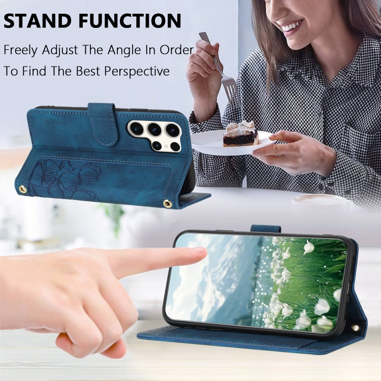 For Samsung Galaxy S25 Ultra 5G Tulips Embossed Leather Phone Case with Lanyard(Blue)