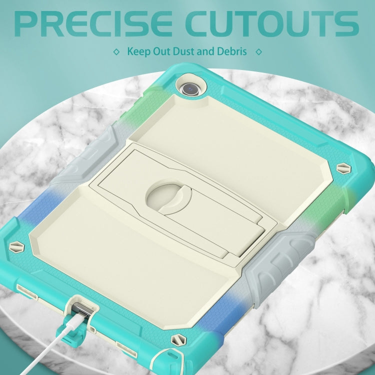 For Samsung Galaxy Tab A11+ / A9+ Silicone Hydric PC Tablet Case with Shoulder Strap & Holder(Colorful Light Blue)