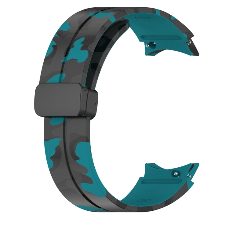 For Samsung Galaxy Watch5 / 5 Pro / Watch 4 / 4 Classic Magnetic Clasp Camouflage Silicone Watch Band(Camouflage Dark Blue)