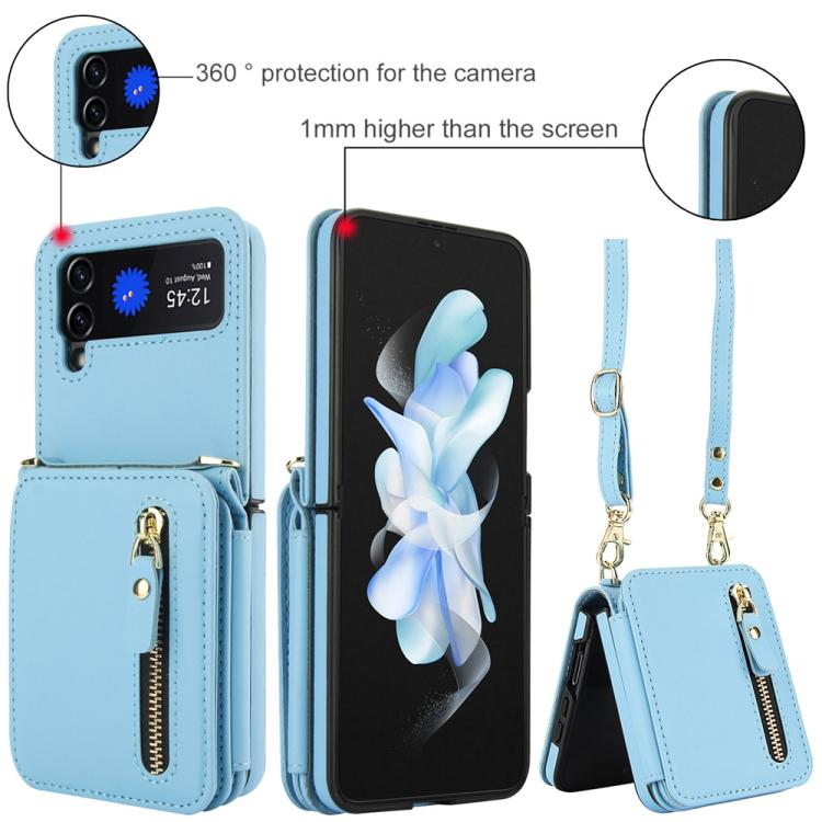For Samsung Galaxy Z Flip3 Crossbody Zipper Dual Buckle Card Bag Folding Phone Case(Blue)
