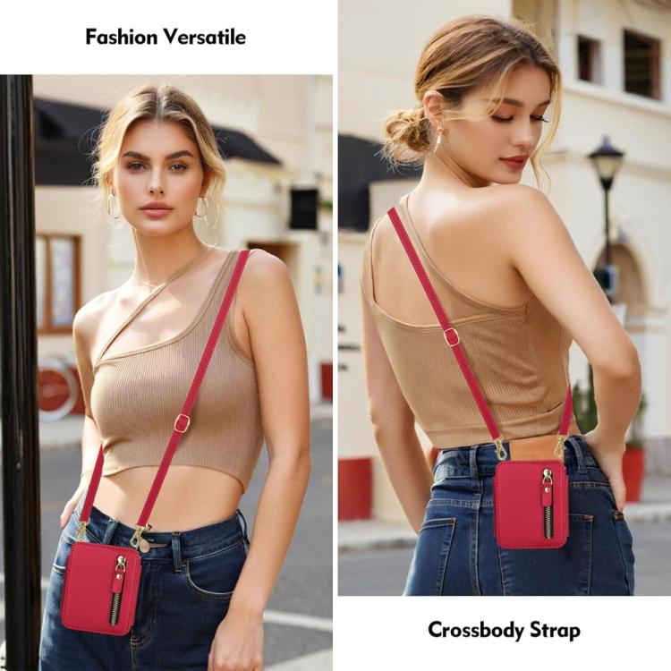 For Samsung Galaxy Z Flip4 Crossbody Zipper Dual Buckle Card Bag Folding Phone Case(Red)