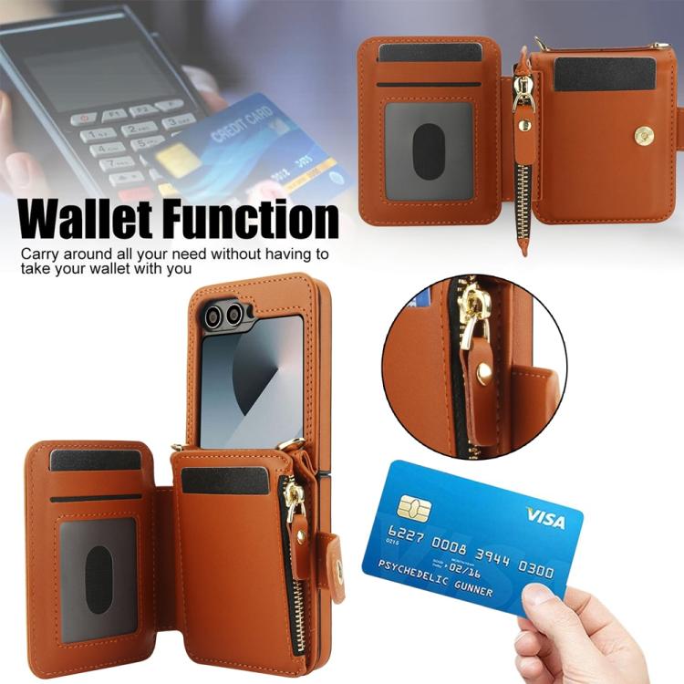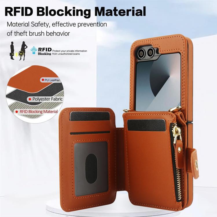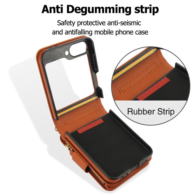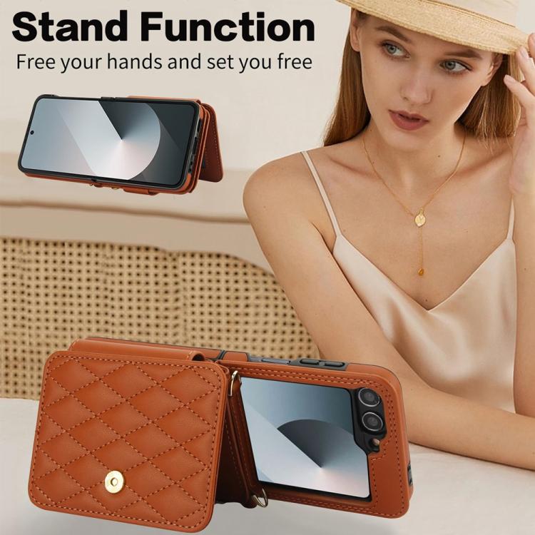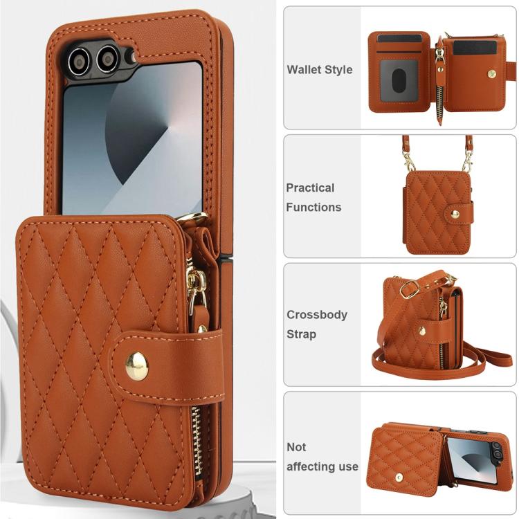 For Samsung Galaxy Z Flip5 Crossbody Rhombus Wallet Bag Folding Phone Case with Lanyard(Brown)