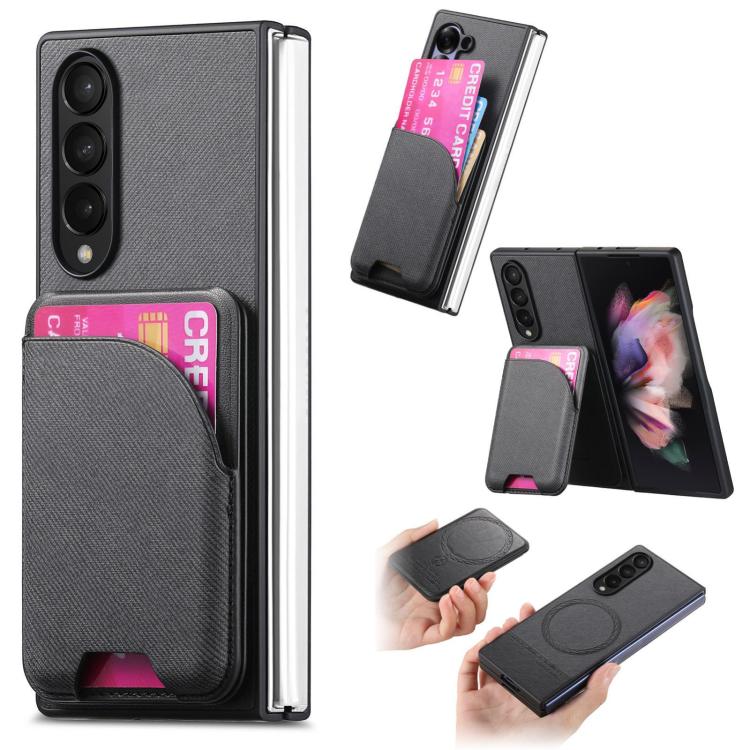 For Samsung Galaxy Z Fold3 5G Twill Fabric Leather Skin Card Bag Magnetic Back Phone Case(Black)