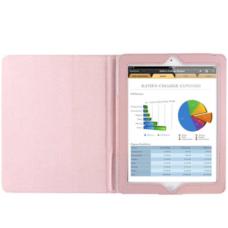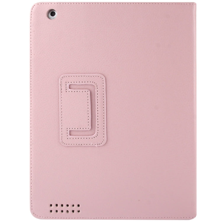 High Quality Litchi Texture Folding Leather with Sleep / Wake-up & Holder Function for iPad 2 / iPad 3 / iPad 4(Pink)