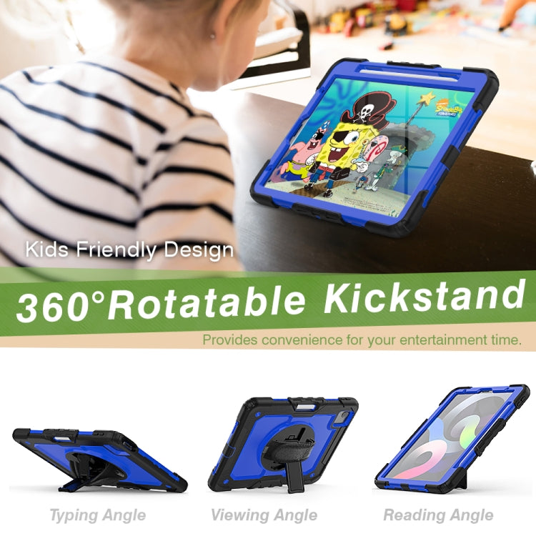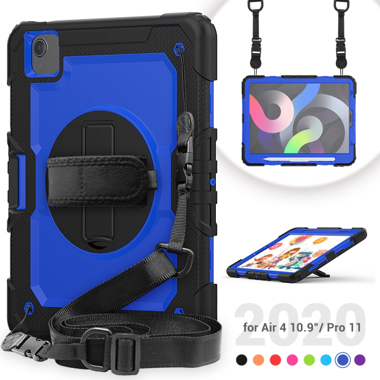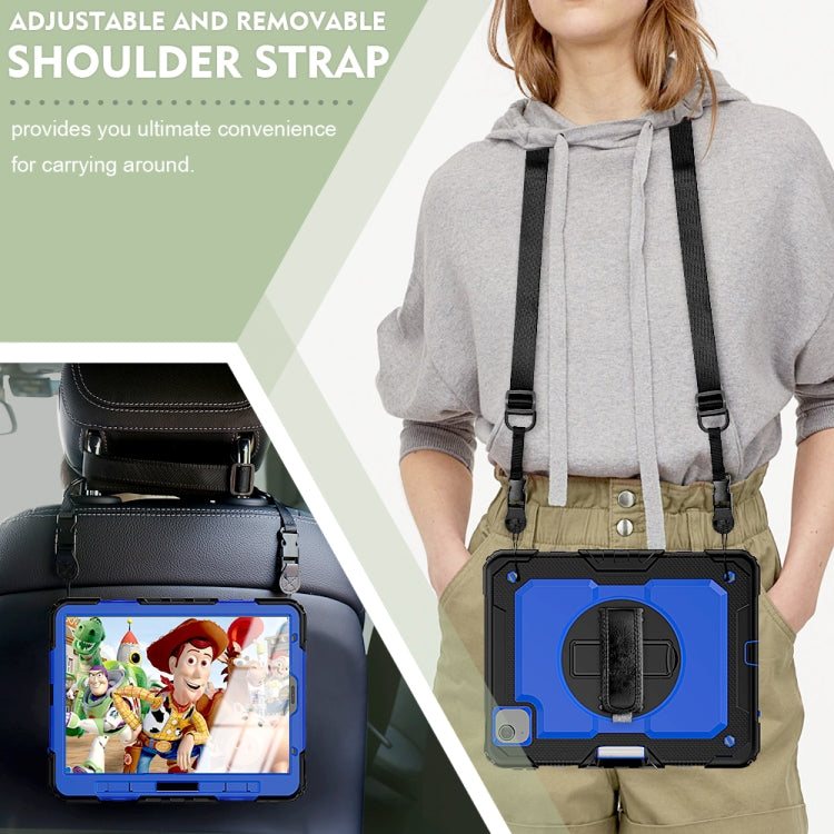 Shockproof Colorful Silicone + PC Protective Case with Holder & Shoulder Strap & Hand Strap & Pen Slot For iPad Air 2022 / 2020 10.9 (Black Blue)