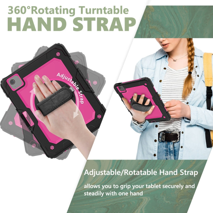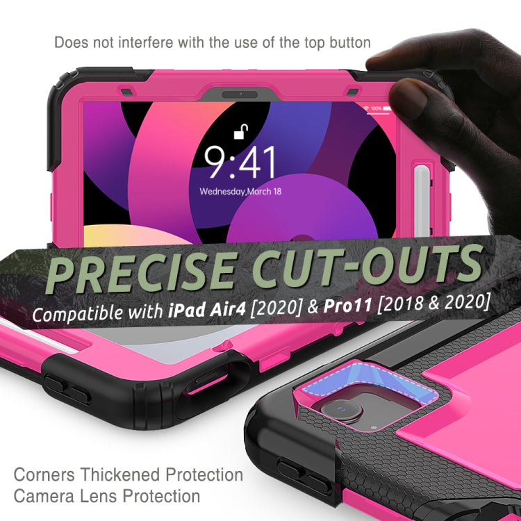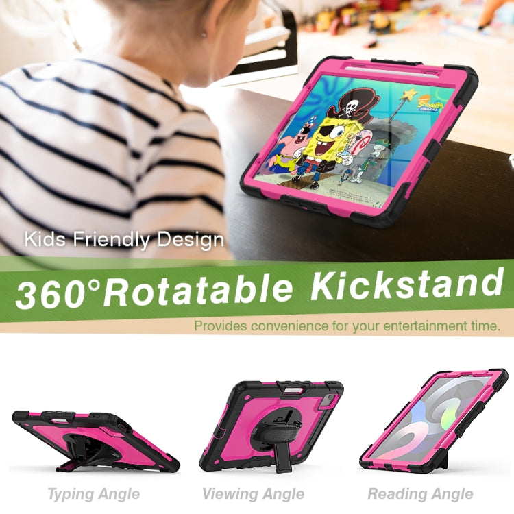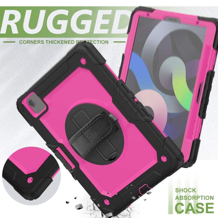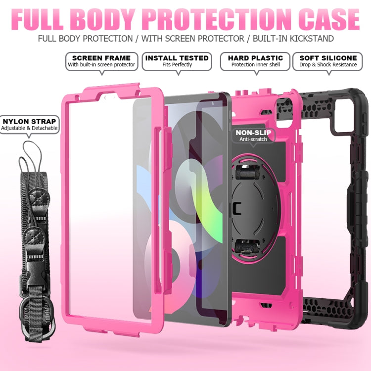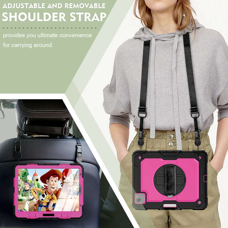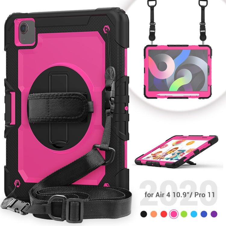Shockproof Colorful Silicone + PC Protective Case with Holder & Shoulder Strap & Hand Strap & Pen Slot For iPad Air 2022 / 2020 10.9 (Black Rose Red)