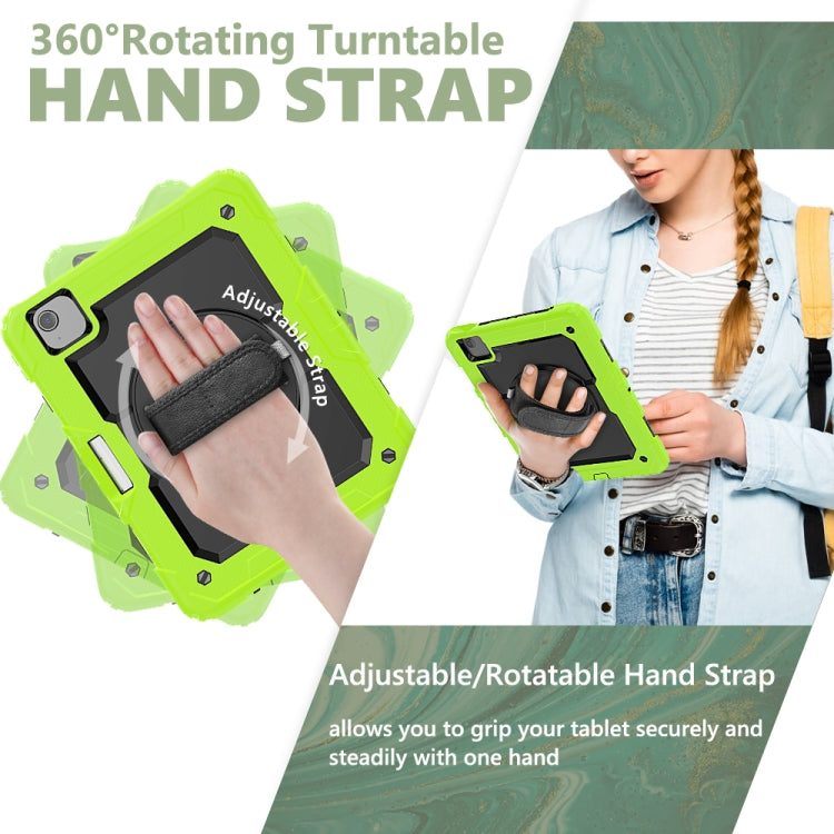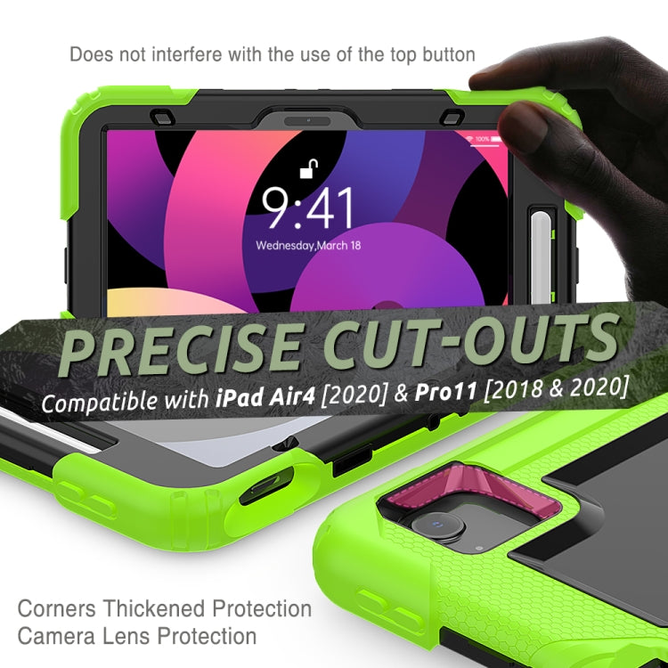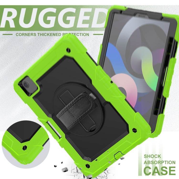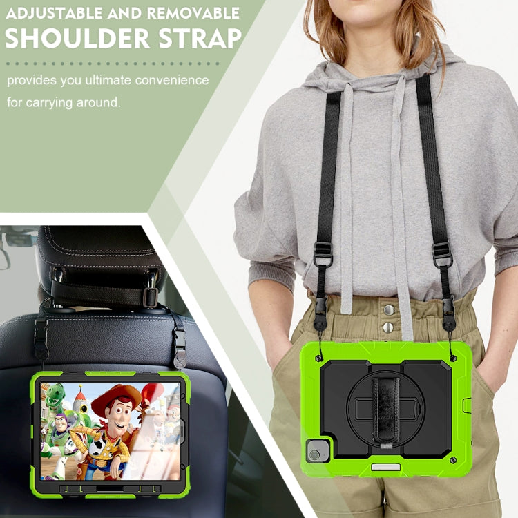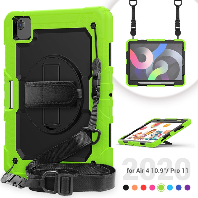 Shockproof Colorful Silicone + PC Protective Case with Holder & Shoulder Strap & Hand Strap & Pen Slot For iPad Air 2022 / 2020 10.9 (Yellow Green)