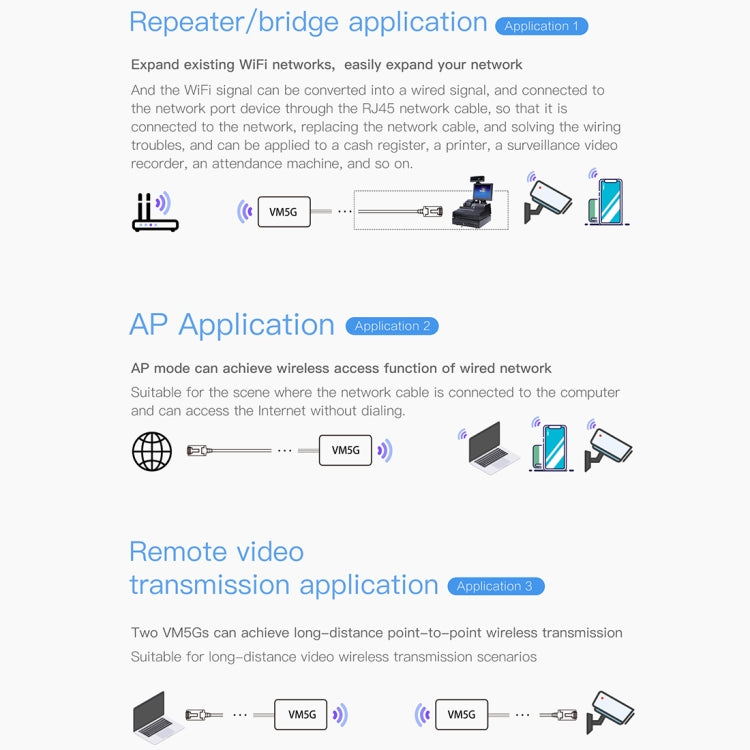 VM5G 1200Mbps 2.4GHz & 5GHz Dual Band WiFi Module with 4 Antennas, Support IP Layer / MAC Layer Transparent Transmission, Applied to Repeater / Bridge & AP & Remote Video Transmission