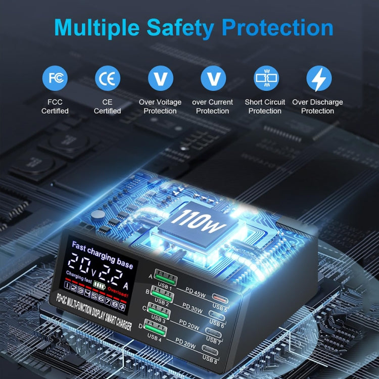 X9M 9-in-1 110W USB+PD Smart Multi-ports QI Magnetic Wireless Charger, Spec: White AU Plug