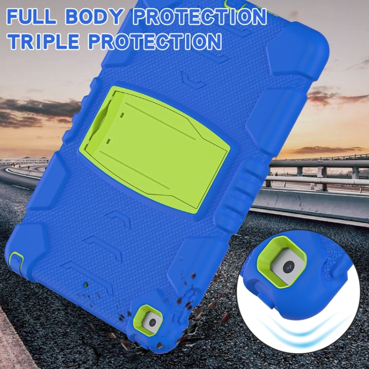 For iPad 10.2 2021 / 2020 / 2019 3-Layer Protection Screen Frame + PC + Silicone Shockproof Combination Case with Holder(Blue+Lime)