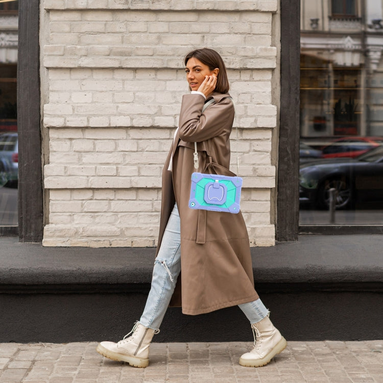 For iPad 10.2 2021 / 2020 / 2019 Contrast Color Robot Silicone Hybrid PC Tablet Case(Purple Mint Green)