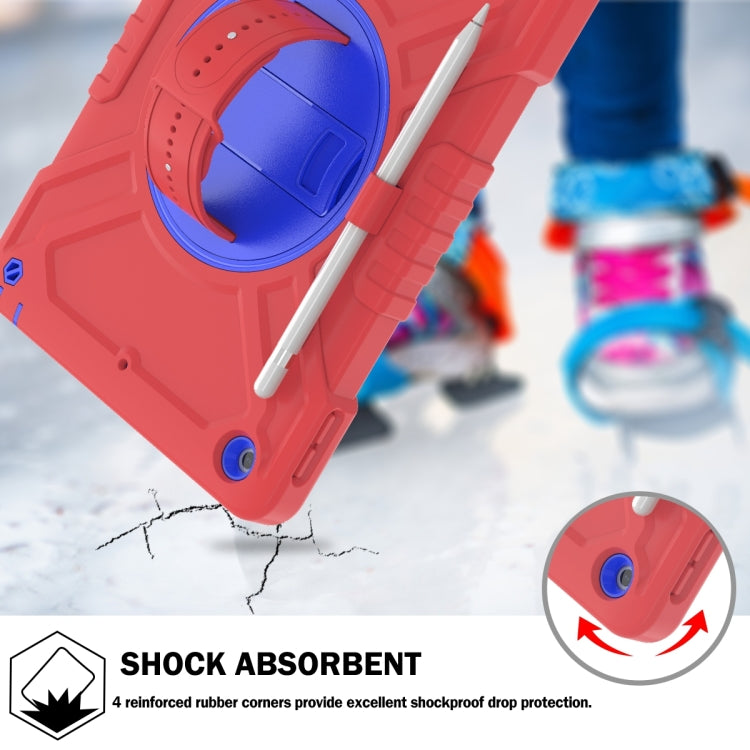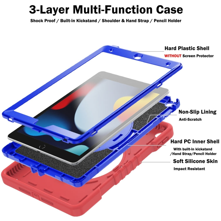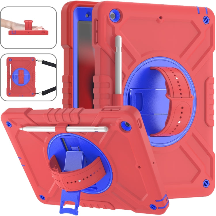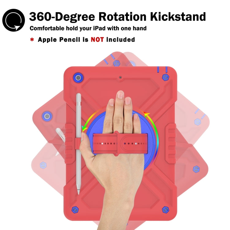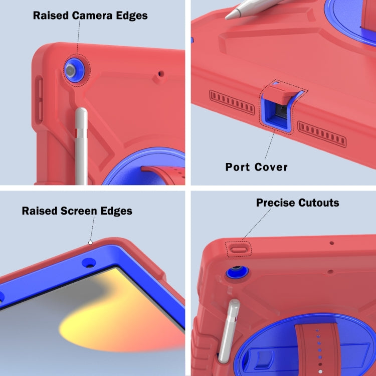 For iPad 10.2 2021 / 2020 / 2019 X Rotation PC Hybrid Silicone Tablet Case with Strap(Red Blue)