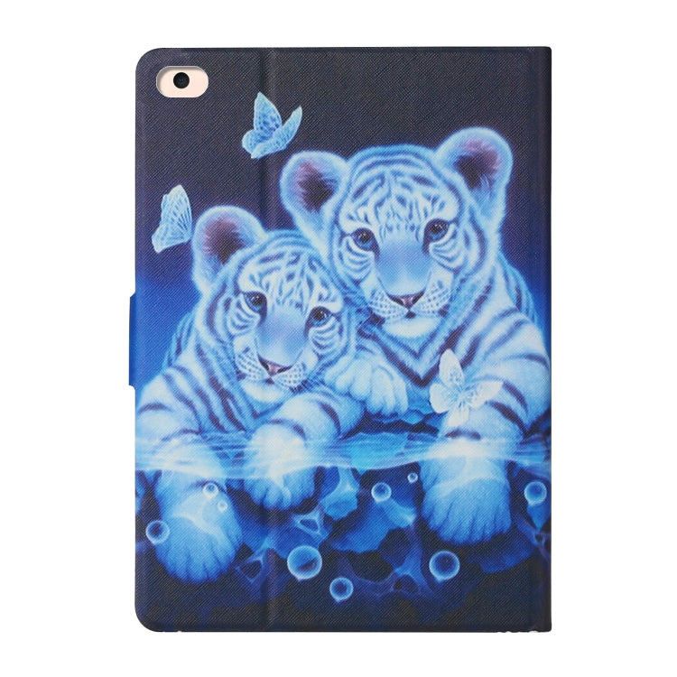 For iPad 5 Colored Drawing Pattern Horizontal Flip Leather Case with Holder & Card Slots & Sleep / Wake-up Function(Tiger)
