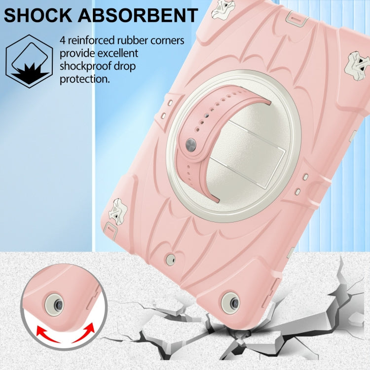 For iPad 9.7 2018 / 2017 / Air 2 Bat Hand Grip Turntable Stand Tablet Case(Pink White)