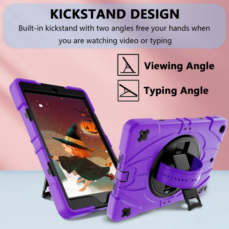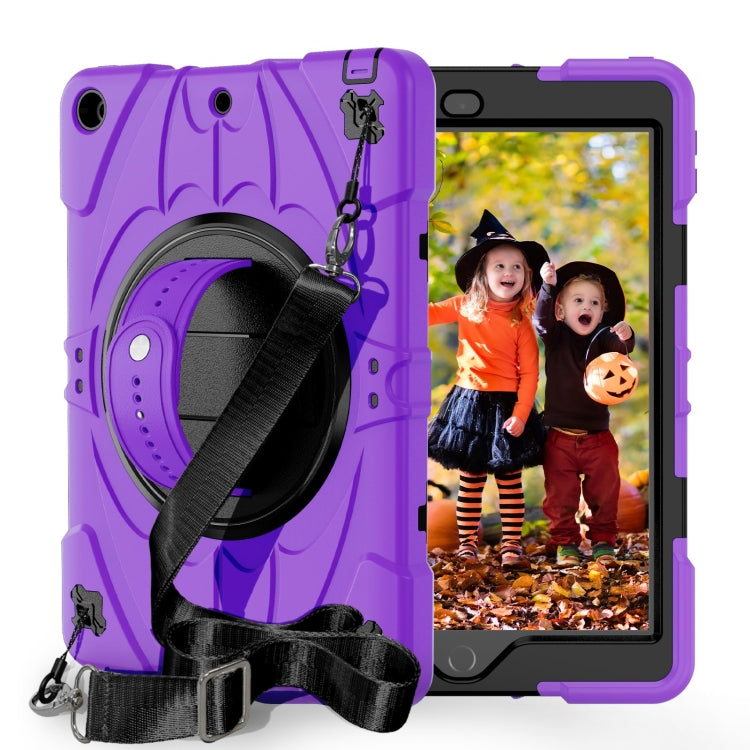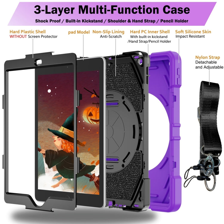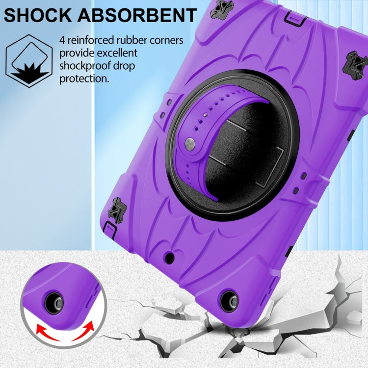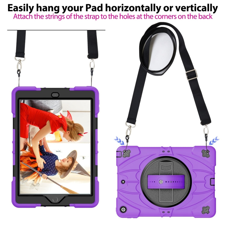 For iPad 9.7 2018 / 2017 / Air 2 Bat Hand Grip Turntable Stand Tablet Case(Purple Black)