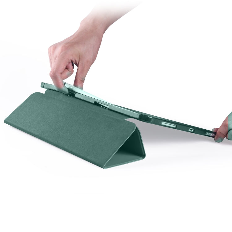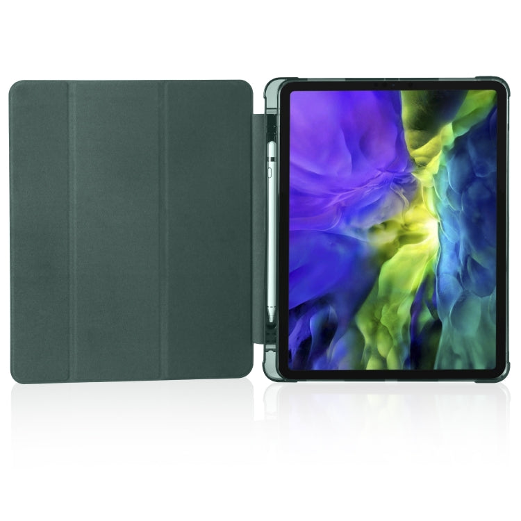 For iPad Air 13 2025 / 2024 / iPad Pro 12.9 (2020) / iPad Pro 12.9(2018) 3-folding Horizontal Flip PU Leather + Shockproof TPU Tablet Case with Holder & Pen Slot(Pine Green)
