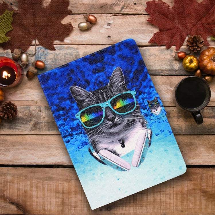 For iPad Air / Air 2 / iPad 9.7 2017 / 2018 TPU Electric Pressed Horizontal Flip Leather Case with Holder & Card Slot & Sleep / Wake-up Function(Headphone Cat)