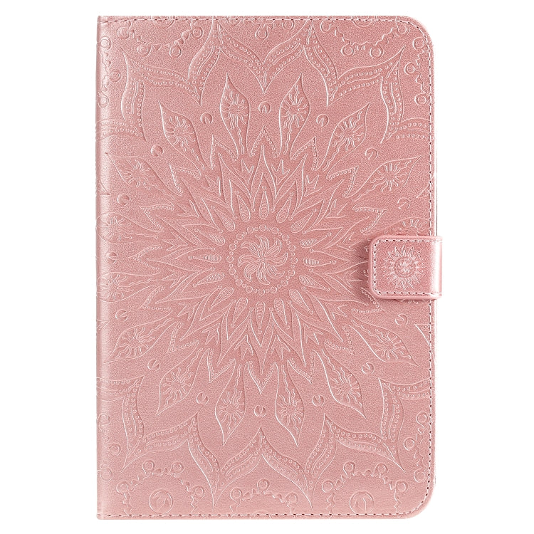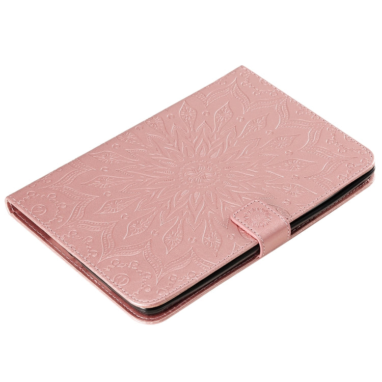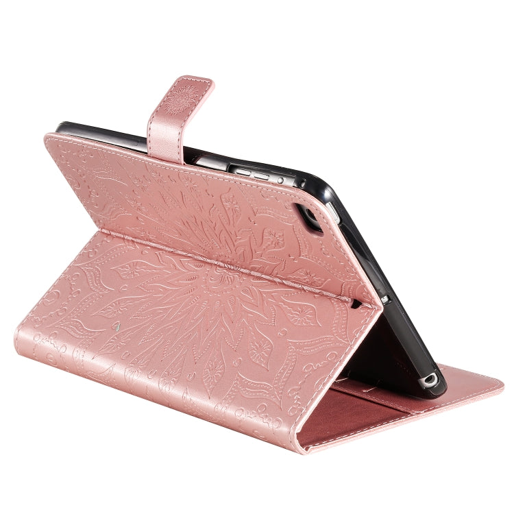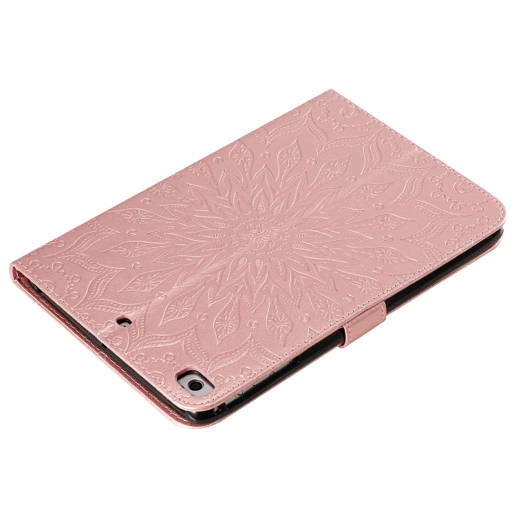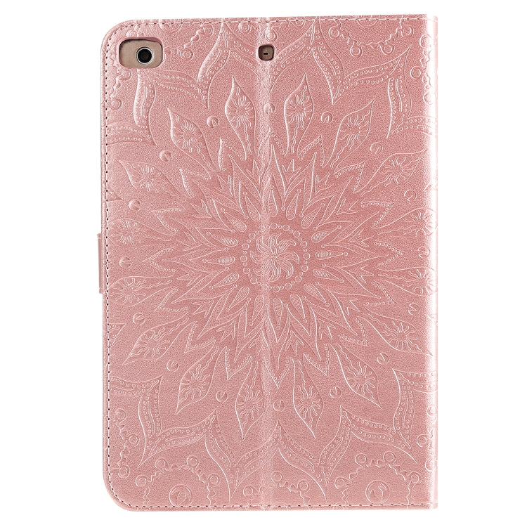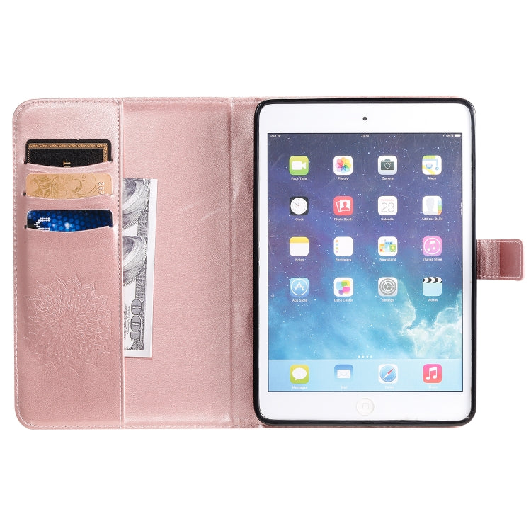 For iPad Mini 2019 & 4 & 3 & 2 & 1 Pressed Printing Sun Flower Pattern Horizontal Flip Leather Case with Holder & Card Slots & Wallet(Rose Gold)