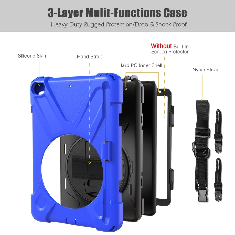 For iPad Mini 5 360 Degree Rotation Silicone Protective Cover with Holder & Hand Strap & Long Strap & Pencil Slot(Blue)