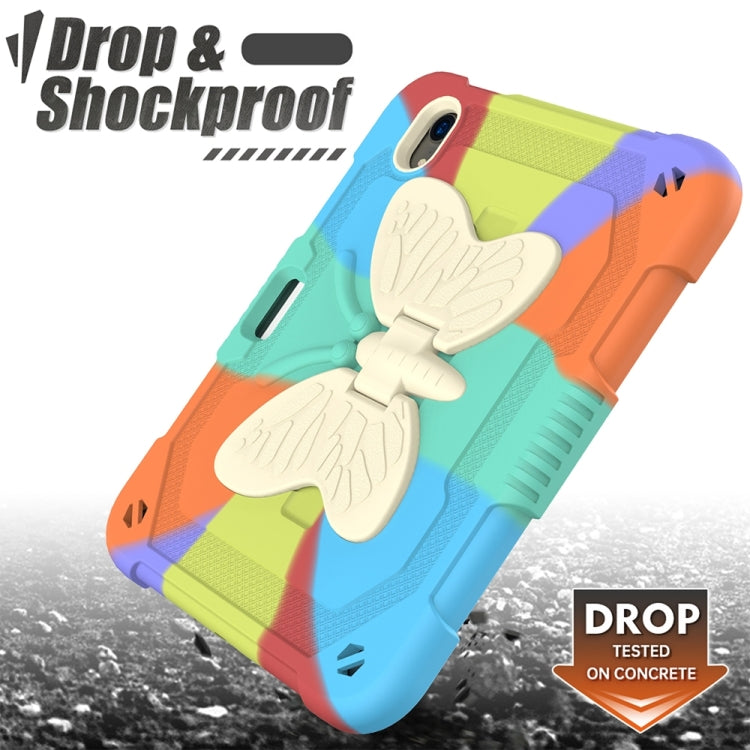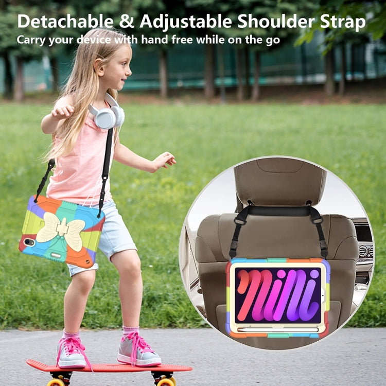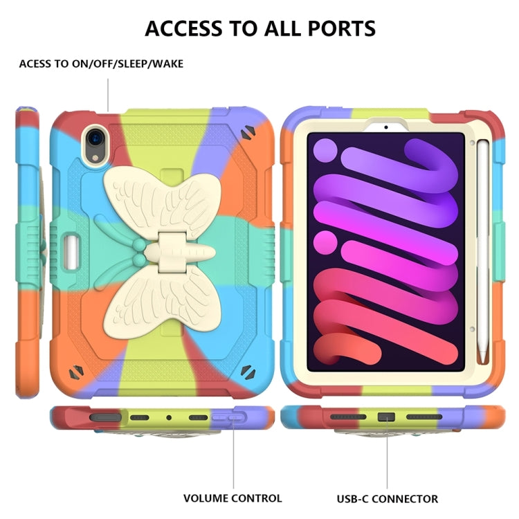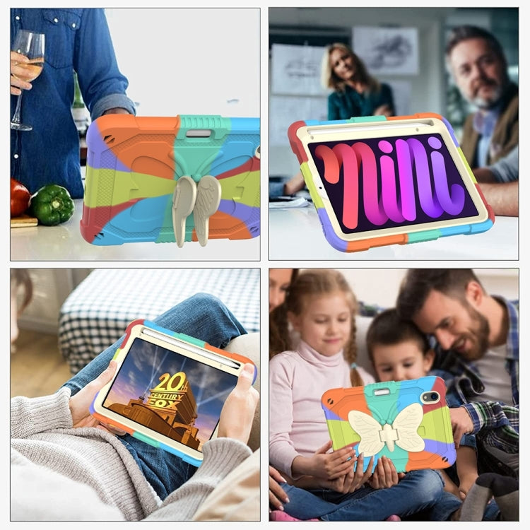 For iPad mini 6 / mini 2024 Beige PC + Silicone Anti-drop Protective Tablet Case with Butterfly Shape Holder & Pen Slot(Colorful Red)