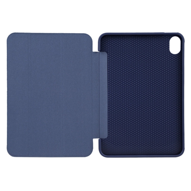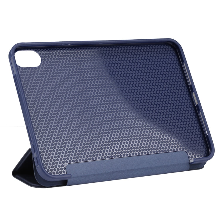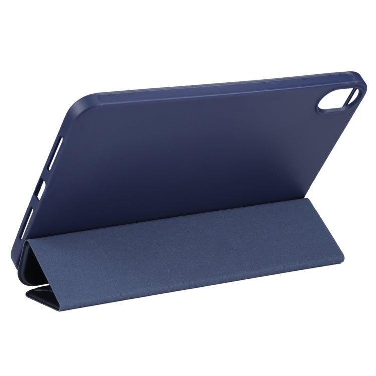 For iPad mini 6 / mini 2024 3-folding TPU Horizontal Flip Leather Tablet Case with Holder(Dark Blue)